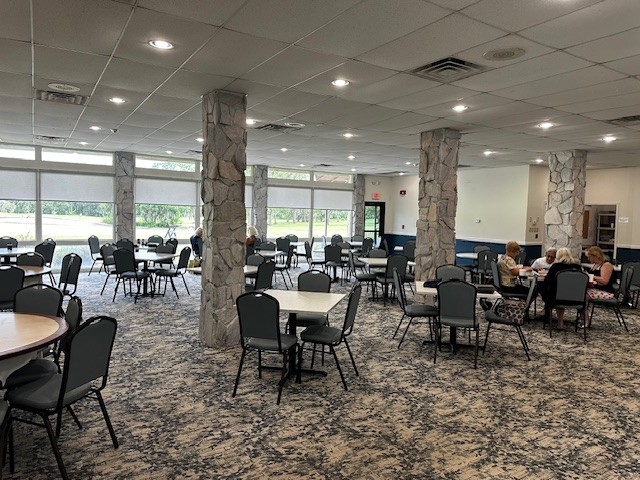 This dining venue seats 100+ and provides a more formal intimate setting for family and friends gathering for lunch and dinner. It is not uncommon to find many large groups enjoying evening revelry in our Main Dining Room and most of our monthly social functions are held here, as well.